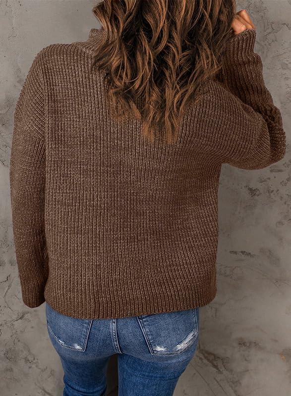 Dokotoo Womens Sweaters Long Sleeve 1/4 Zip Pullover Polo V Neck Dressy Casual Tops(B1 Brown)