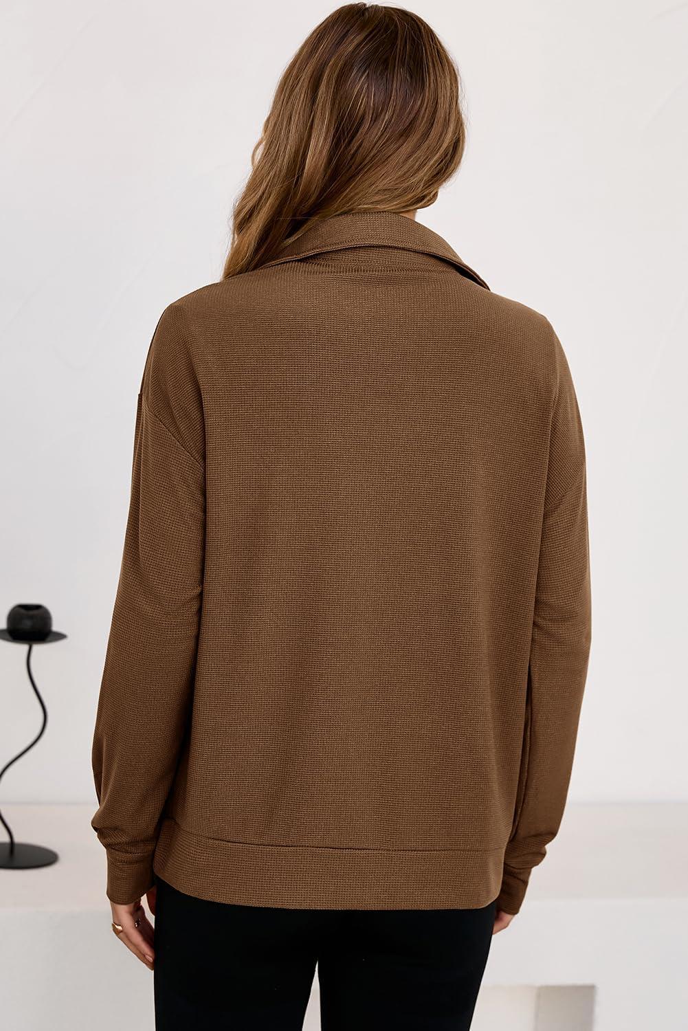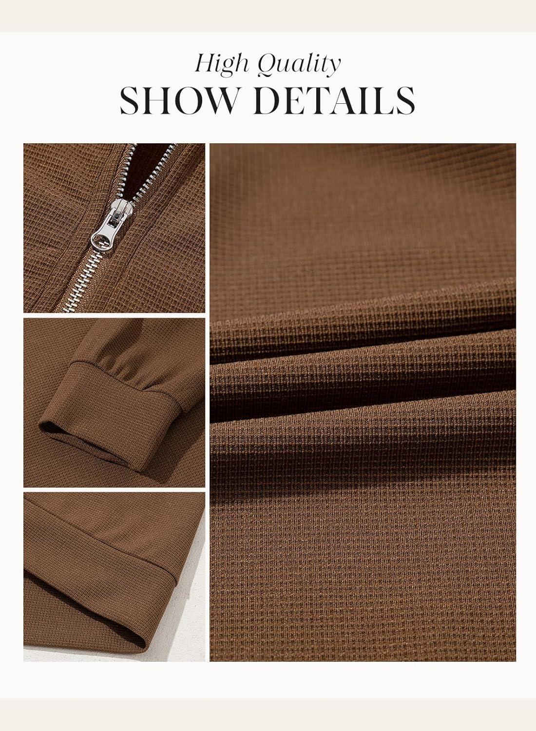 Dokotoo Womens Sweatshirt Waffle Knit Long Sleeve Lapel Half Zip Up Casual Lightweight Soft Sweatshirts Loose Pullover Tops(Brown)
