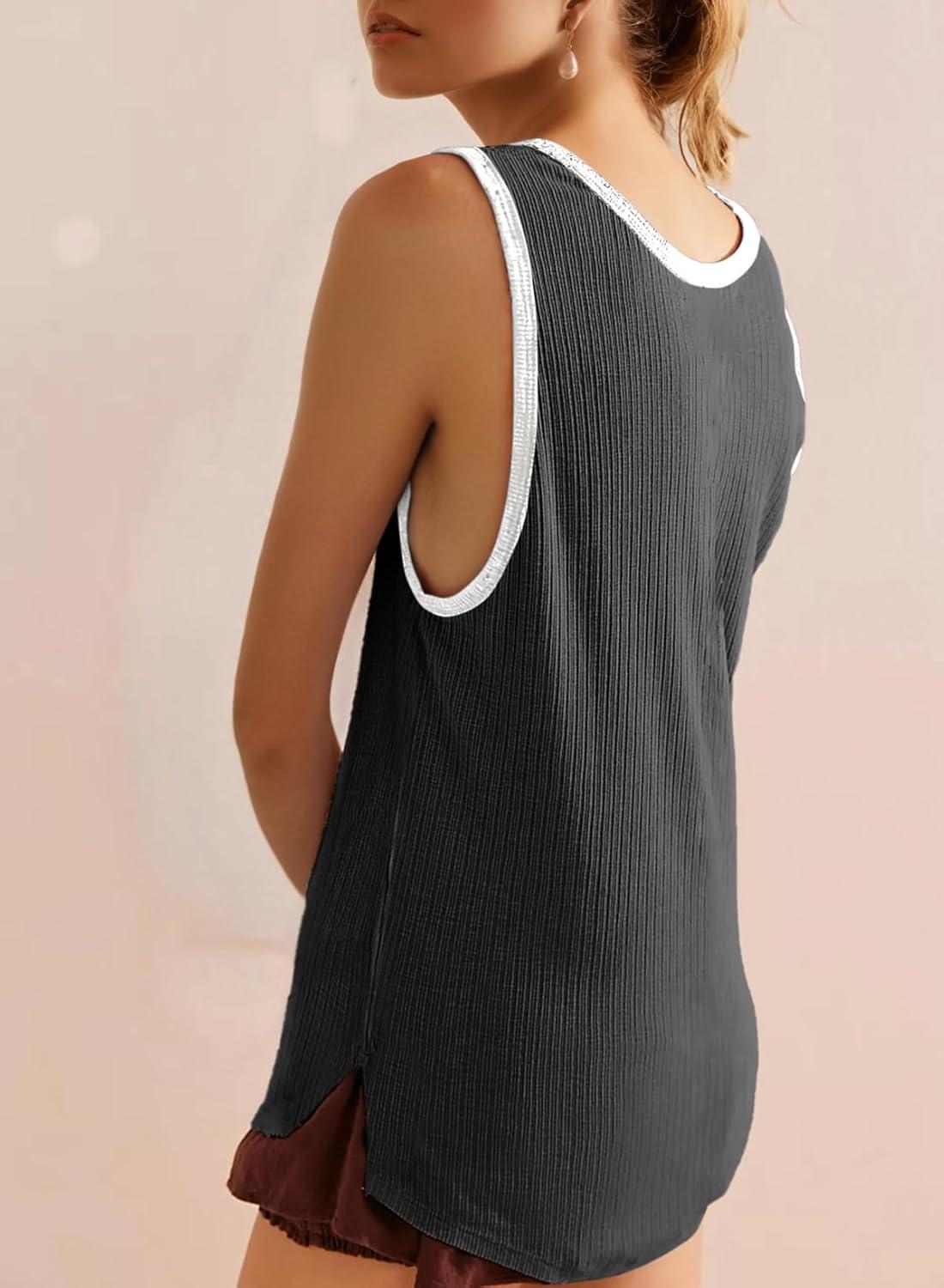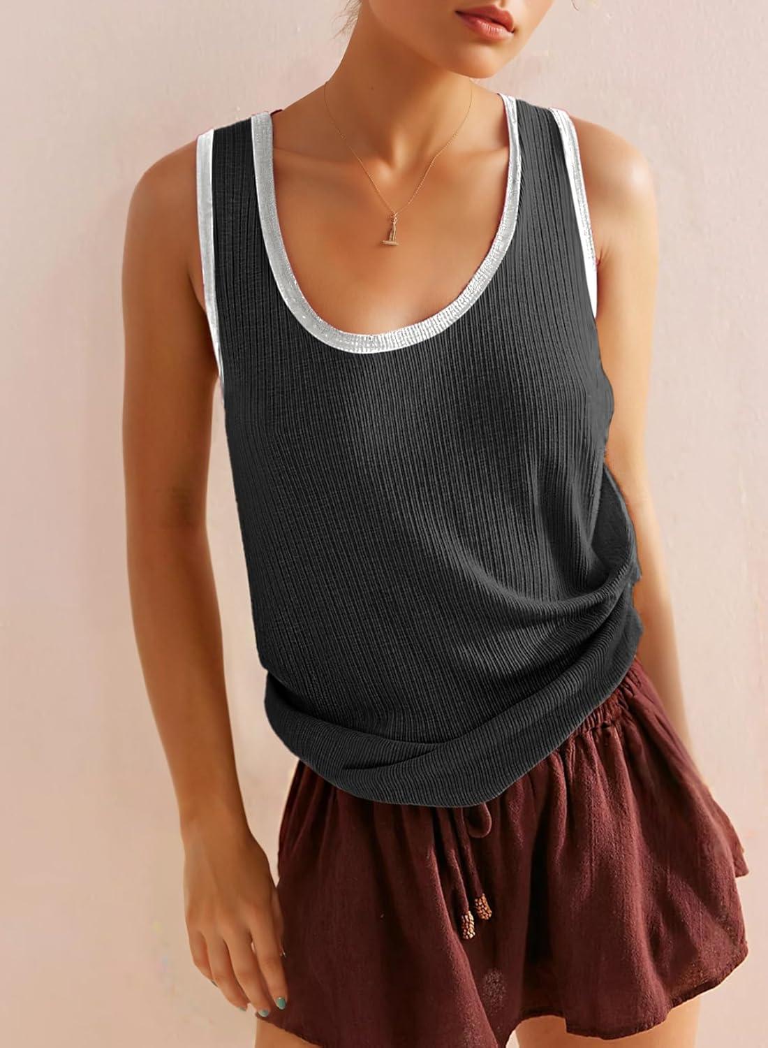 Dokotoo Womens Tank Tops 2025 Crewneck Ribbed Colorblock Casual Summer Tops Basic Sleeveless Shirts(Gray)