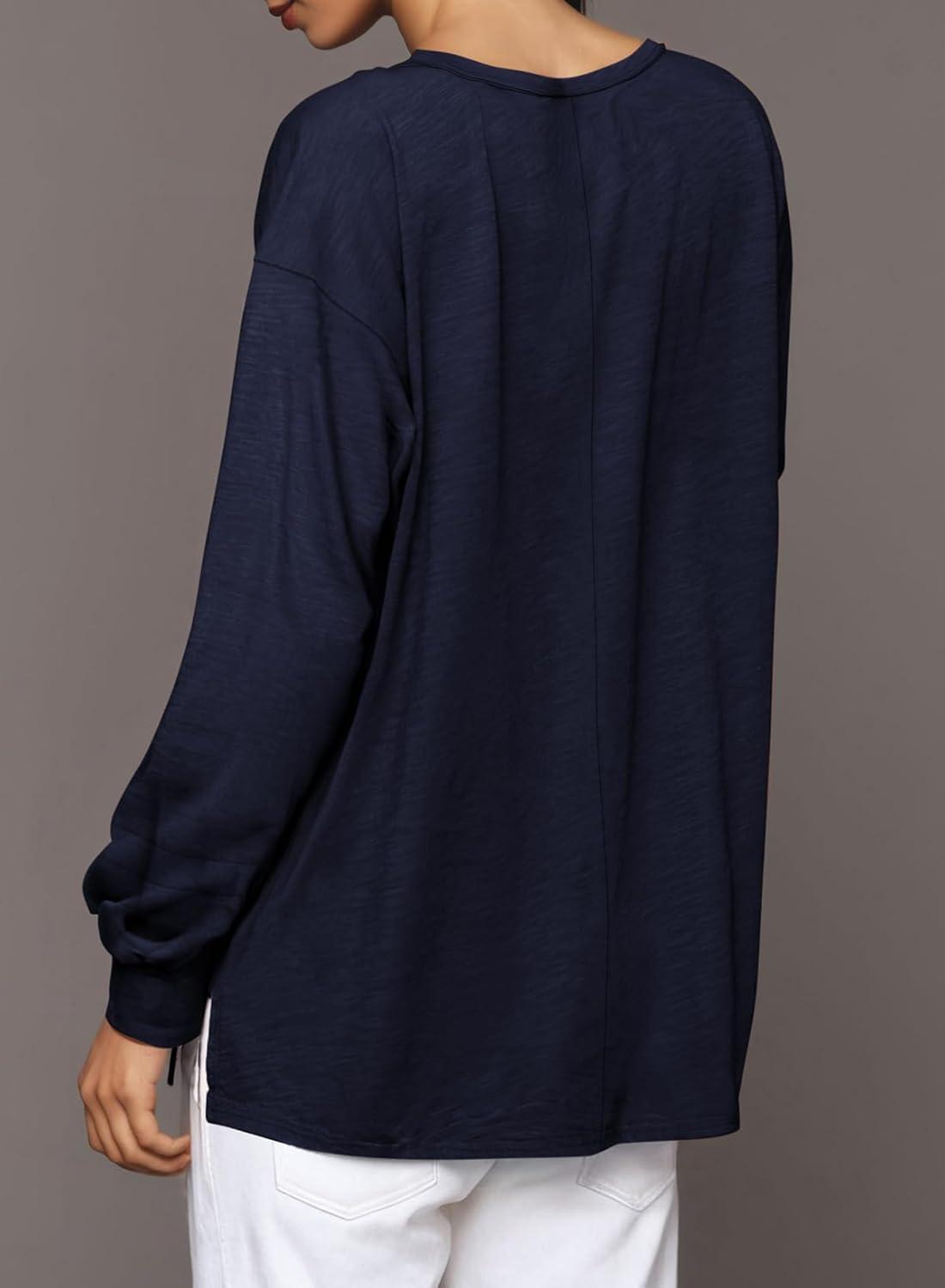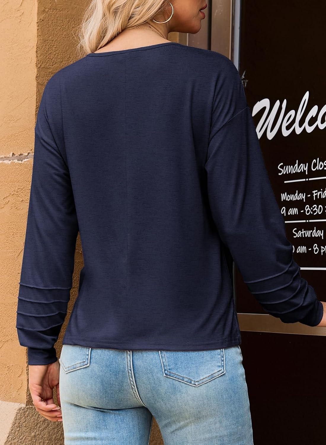 Dokotoo Womens Tops 2025 Fashion Long Sleeve Shirts Loose Cute Crewneck Basic Business Tees Blouses(Blue)