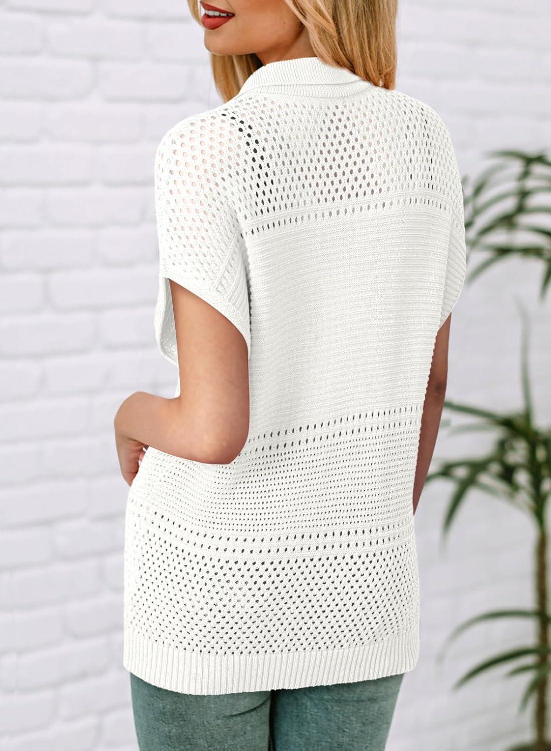 Dokotoo Womens Tops 2025 Summer Spring Casual V Neck Short Sleeve Sweater Crochet Tops Casual Dressy Blouses(White)
