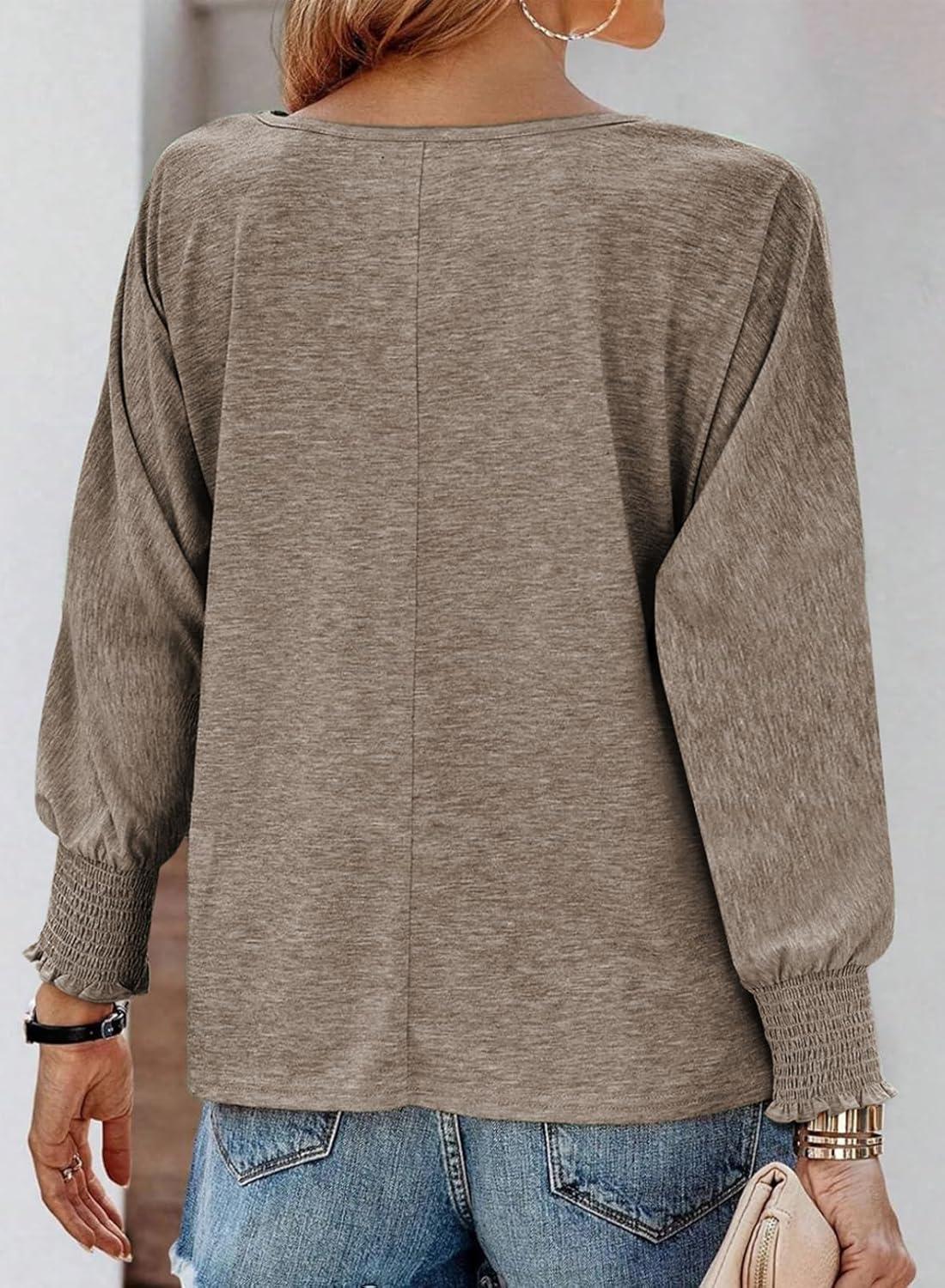 Dokotoo Womens Tops Long Sleeve Tops Shirts 2025 Spring Trendy Business Work Loose Basic T-Shirts(A Simply Taupe)