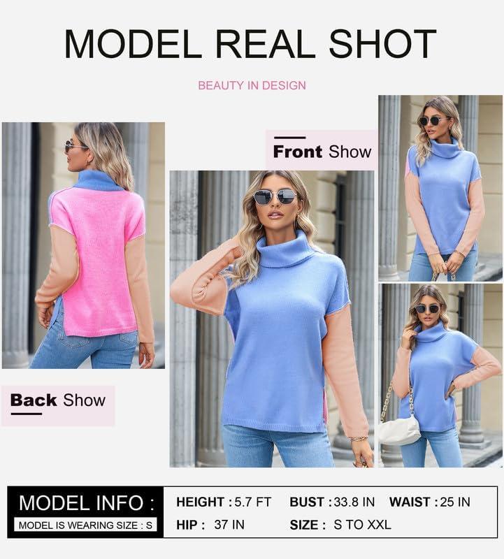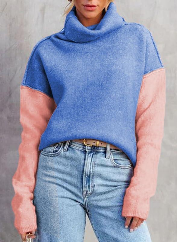 Save up to 40% on Dokotoo Womens Turtleneck Sweaters Casual Long Sleeve Color Block Side Slit Pullover Knit Jumper Tops(Sky Blue) styles during our end-of-season sale.
