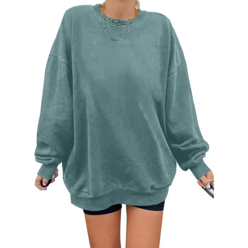 Dokotoo Womens Vintage Basic Oversized Crewneck Long Tunic Sweatshirts Pullover Tops(A Green)
