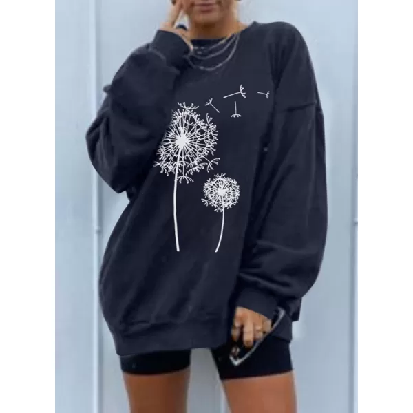 Dokotoo Womens Vintage Basic Oversized Crewneck Long Tunic Sweatshirts Pullover Tops(B Dandelion Blue)